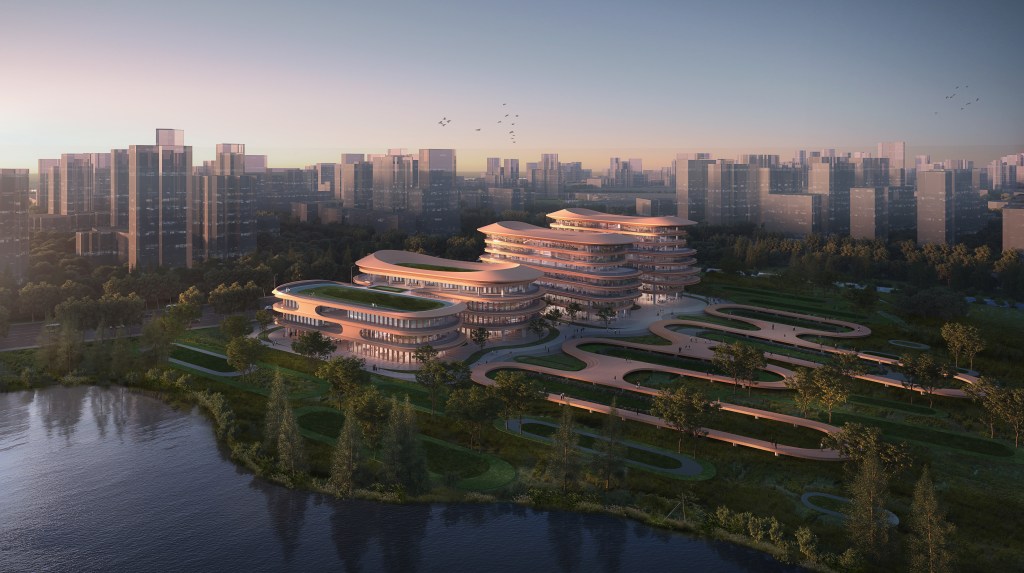 Unveiling Atelier Maneuver’s competition entry: an innovative design for a Headquarters office in Quanzhou, ideally situated south of Sanyue Lake.