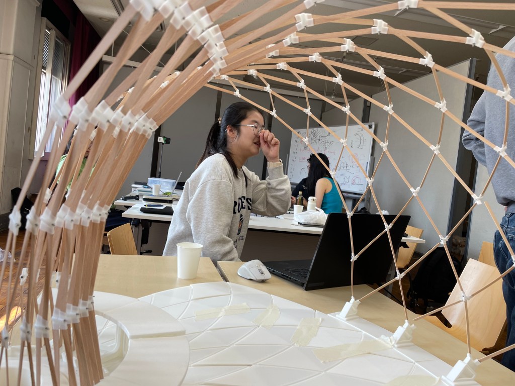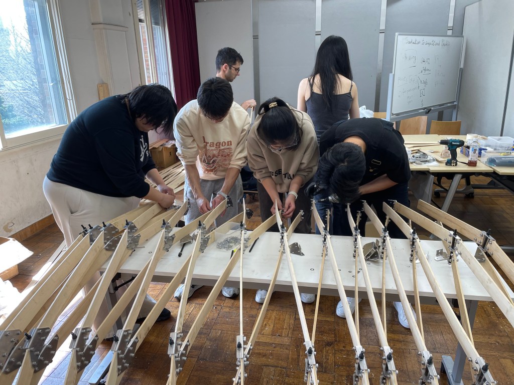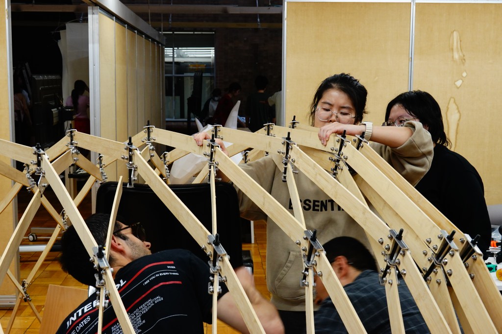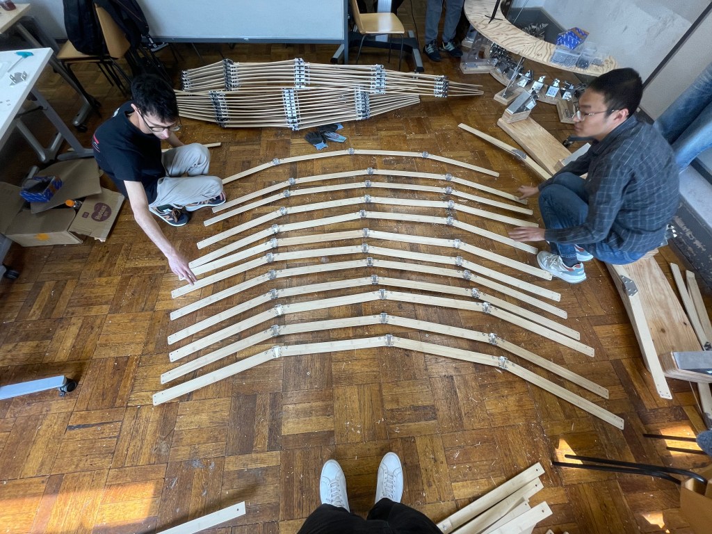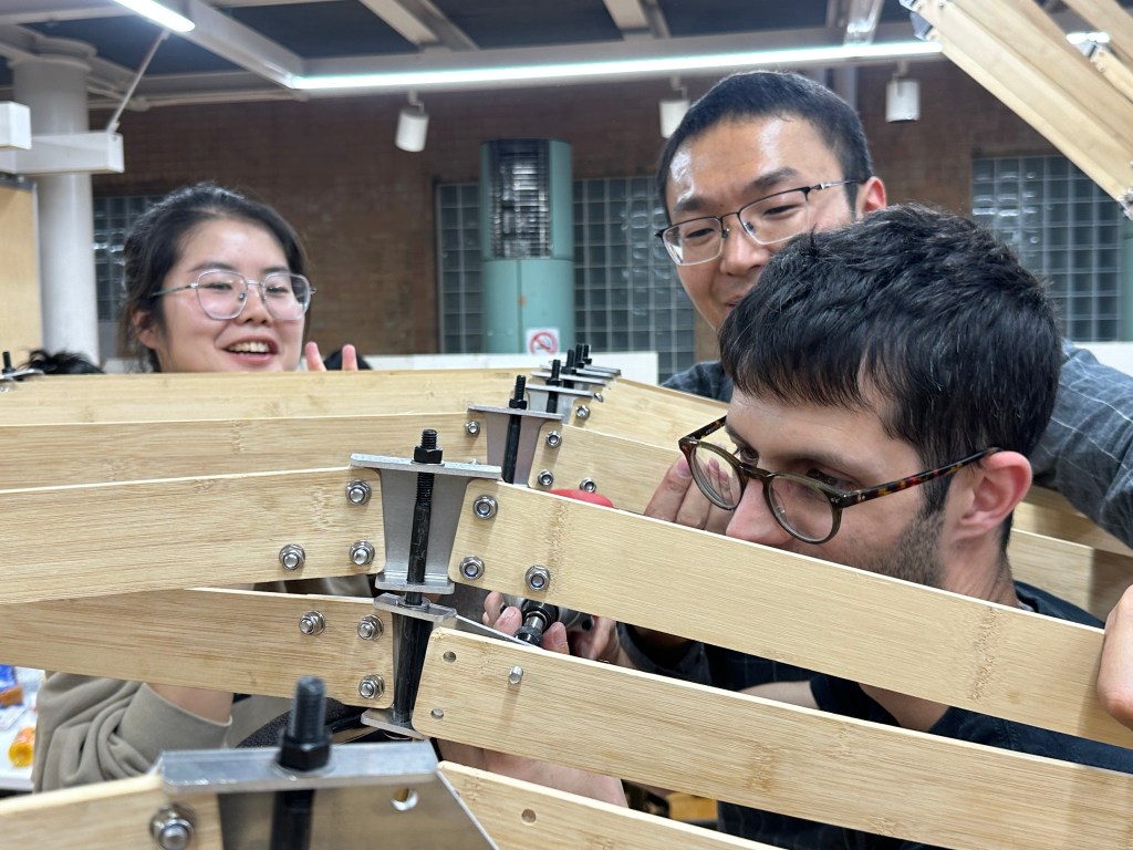 At the week-long workshop, Instructor Haotian Man and Dr. Zongshuai Wan—with contribution from Prof. Dr. Eike Schling—led a team of five participants in the design and fabrication of a Kit‑of‑Parts Equilateral Constant Normal Curvature (ECNC) Gridshell.